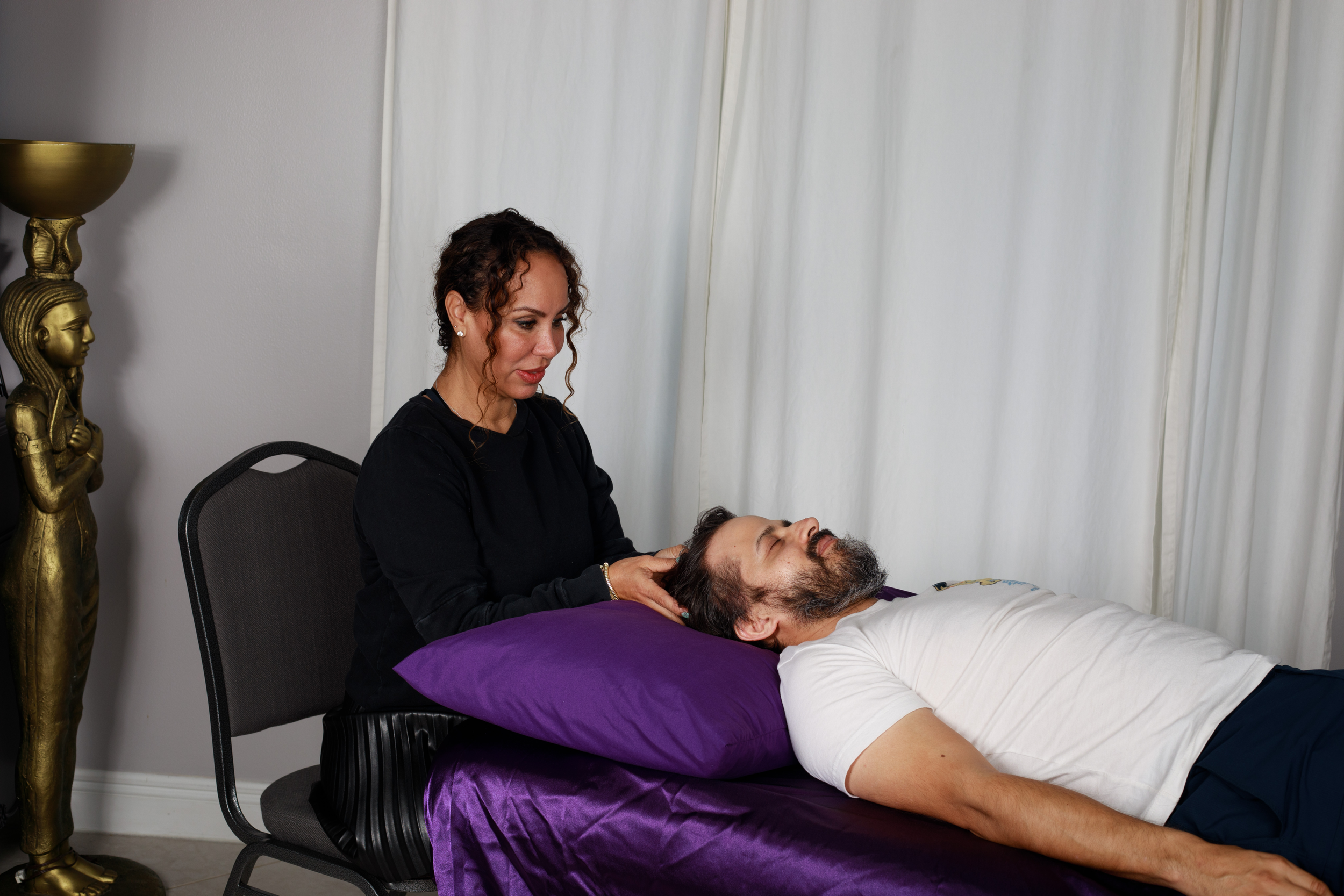 My distiller. Experienced. Provides so much space. Sessions are far more dramatic than I’ve experienced anywhere. Slices thru shit, helps get rid of it. Super present, space. As good as her mentors.